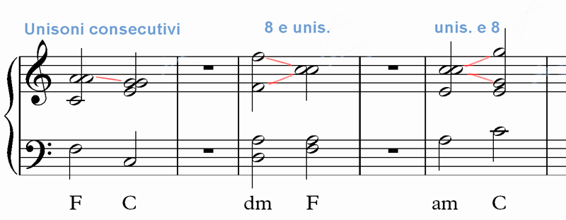 Quindi unisoni, ottave e quinte consecutive non sono mai ammessi.