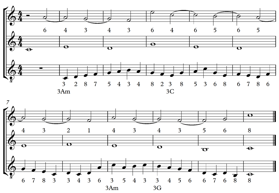C'è un errore nella battuta 6 dove il Do al basso salta al Mi e non viene risolta come dissonanza, per grado congiunto come dovrebbe per completare il disegno della nota di passaggio. |